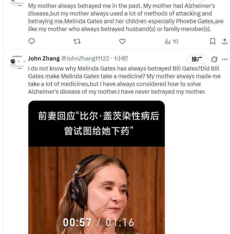 I do not know why Melinda Gates has always betrayed Bill Gates?Did Bill Gates make Melinda Gates take a medicine? My mother always made me take a lot of medicines,but I have always considered how to solve Alzheimer's disease of my mother.I have never betrayed my mother.